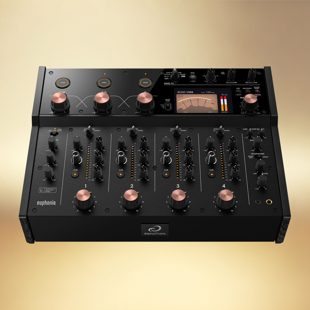 Mit einem Mixer wie dem euphonia von AlphaTheta (ehemals Pioneer DJ) haben wir wahrlich nicht gerechnet, denn Nischenprodukte wie Rotary-DJ-Mixer waren wir von dem japanischen DJ-Ausrüster in der Vergangenheit nicht gewohnt. Doch der euphonia bietet als Besonderheit nicht nur Drehpotis zum Mixen, sondern auch klangfärbende Transformatoren von Rupert Neve Designs und Drehregler, die ihren Widerstand je nach Drehgeschwindigkeit anpassen. Darüber hinaus lassen sich Send-Signale frequenzselektiv in den Effektweg einspeisen und auch der Time-Regler bietet ein Effekt-angepasstes Handling. Alles in allem ein echtes Unikat unter den DJ-Mixern mit einem leider auch ambitionierten Preis.
