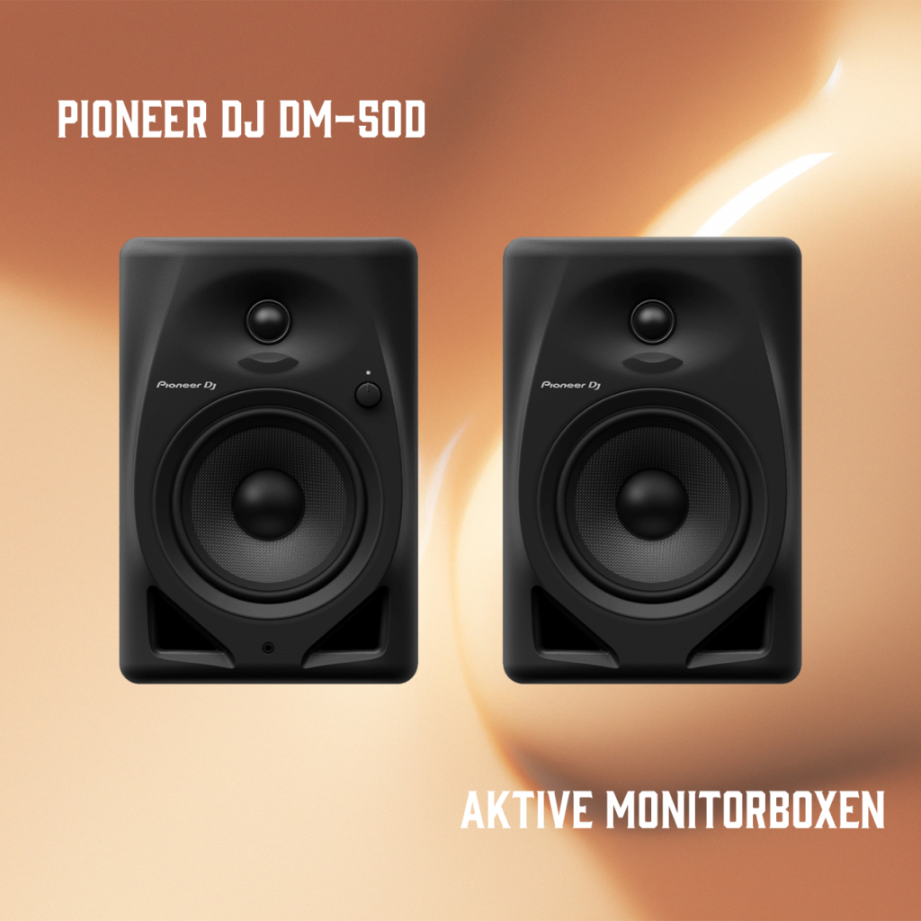 Passend zu dem Controller bietet AlphaTheta mit dem DM-50D Lautsprecher einen flexiblen Universalspeaker an. Der Lautsprecher gehört zur Serie der Desktopmonitore von Pioneer DJ und kann dort als Verbesserung zum DM-40 und DM-40 BT gesehen werden. In unserem Praxistest haben die Lautsprecher einen starken Eindruck hinterlassen. Das liegt vor allem an der soliden Verarbeitung, dem geringen Platzbedarf und dem guten Klang. Das ausgegebene Frequenzspektrum ist sehr breit, der Bass trotz geringer Größe äußerst gut und selbst bei hoher Lautstärke liefert das Boxenpaar ab. Dazu ist die frontseitig angebrachte Lautstärkeregelung sehr praktisch für Produzent:innen und DJs.