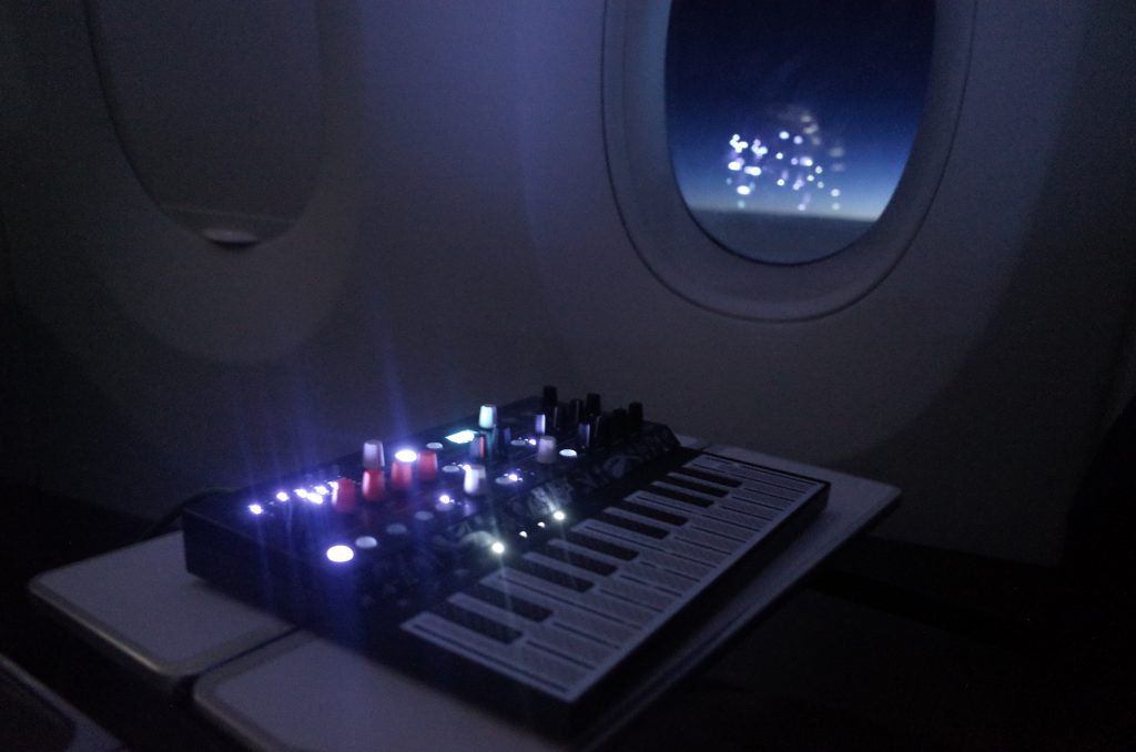 Ich schrieb weiter oben, dass ich für das Netzteil keine Verwendung sehe – auf dem Flug nach Delhi habe ich den Synth an den Bordstrom gehängt. Dabei ist die Tastatur durchgedreht, sie hat keine klaren Daten ausgegeben. Ich vermute, dass das Netzteil das Problem nicht hätte, für mich war es jedoch nicht schlimm, da ich stattdessen mein Telefon als Stromquelle genutzt habe. Und schon funktionierte sie wieder wie gehabt. Power über USB ist toll!