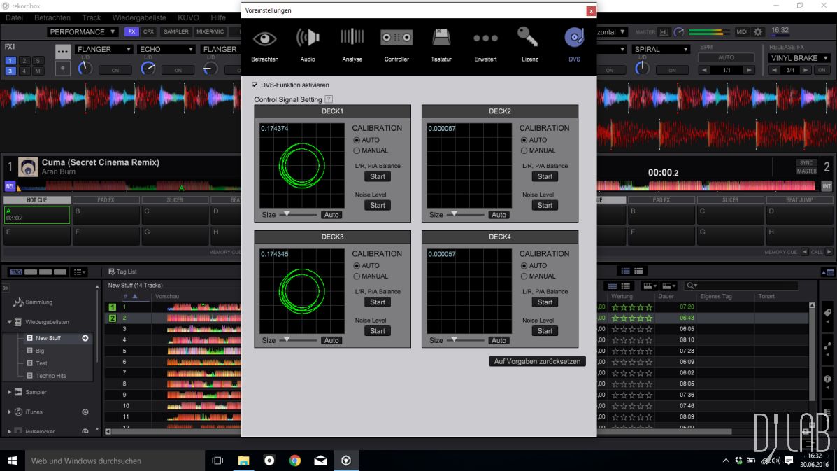 Die Steuerungsumschaltung erfolgt in den Decks und es kann wie bei Traktor Pro und Serato DJ zwischen einem absoluten und relativen Modus ausgewählt werden. In meinem Test funktioniert die DVS-Steuerung zuverlässig und sehr direkt. Ihr könnt bei Bedarf die DVS- und Controller-Steuerung kombinieren.
