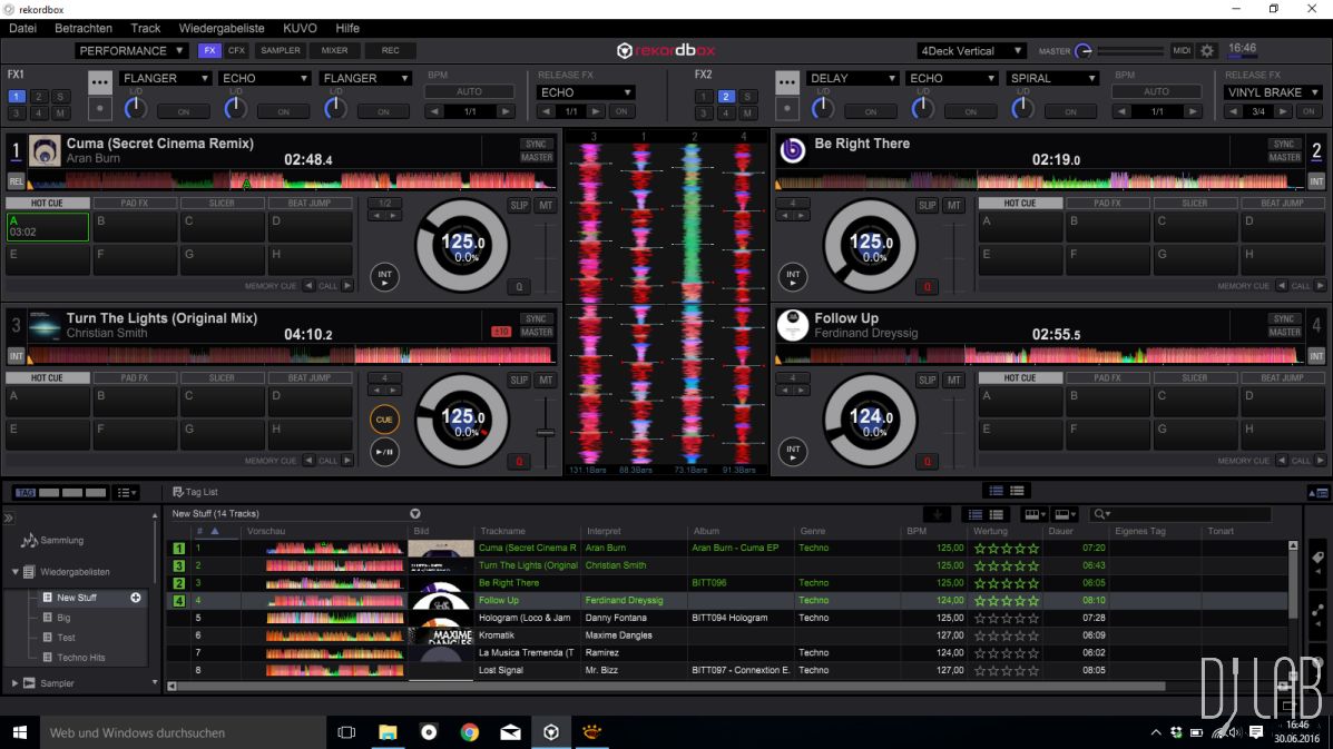 Gut gefallen hat mir in diesem Zusammenhang die umschaltbare Wellenformanzeige in Rekordbox DJ, die bis zu vier Songs horizontal oder vertikal darstellen kann.