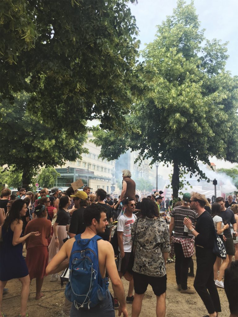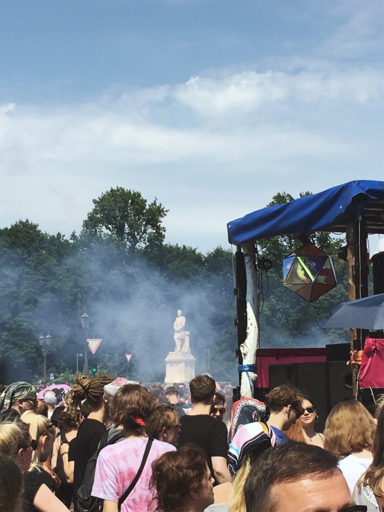 Die Hilfsbereitschaft vor Ort war groß: Wem in der Hitze an Wasser fehlte, durfte überall mittrinken, wer zur Pause an den Rand des Zuges wollte, wurde freundlich durchgelassen. Man mag vielleicht einwenden, dass dieses Spektakel auch viele Schaulustige anzog, die nur des Feierns wegen teilnahmen. Dies trifft aber nicht den Charakter der Veranstaltung: Etliche Initiativen wie der Queer Block oder Aufstehen gegen Rassimus standen Schulter an Schulter auch mit etablierten Parteien wie Die Grünen, Die Linke oder der SPD, um aktiv für ihre Rechte und gegen eine Beschneidung dieser einzustehen. Der überwiegende Teil wirkte fokussiert, trunken höchstens vor Euphorie des Moments.