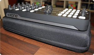 Beim Xone:K2 handelt es sich um einen USB MIDI Controller mit integriertem USB Audio Interface und interner Layer-Funktion. Letzteres ist sowas wie "Shift 2.0" und wird im Laufe dieses Artikels noch ausführlich erklärt. Passend zu den anderen aktuellen Gerätschaften aus der Xone-Serie (DB2 & DB4) besitzt auch der K2 zwei X-Link Buchsen (In/Out), um per RJ45-Netzwerkkabel mehrere dieser Kandidaten miteinander zu vernetzen und so die Controllerdaten gesammelt über eine einzige USB-Verbindung zum angeschlossenen Rechner zu senden bzw. um die Controller mit Energie zu versorgen. Ausgeliefert wird er mit einer Transporttasche, die auch gleichzeitig als Unterlage fungiert, um den Controller im Betrieb auf Mixerhöhe zu bringen. USB- und Netzwerkkabel sowie Installations-CD komplettieren das (sehr nüchterne weil Karton-braune und unscheinbare) Paket.