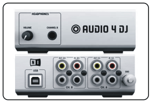 Die AUDIO4DJ ist eine kompakte USB 2.0 - Soundkarte für MAC und PC, mit jeweils vier Ein- und Ausgängen (4 Mono = 2 Stereo). Im Lieferumfang liegt eine LE-Version von NATIVEs DJ-Software TRAKTOR bei, sowie eine Demoversion von TRAKTOR PRO und das Software-Instrument KORE PLAYER. Die A4DJ kann mit TRAKTOR SCRATCH PRO zur Timecodesteuerung eingesetzt werden, Voraussetzung ist natürlich der Besitz des Programmes. Die bei TRAKTOR SCRATCH üblichen Multicorekabel werden nicht mitgeliefert.