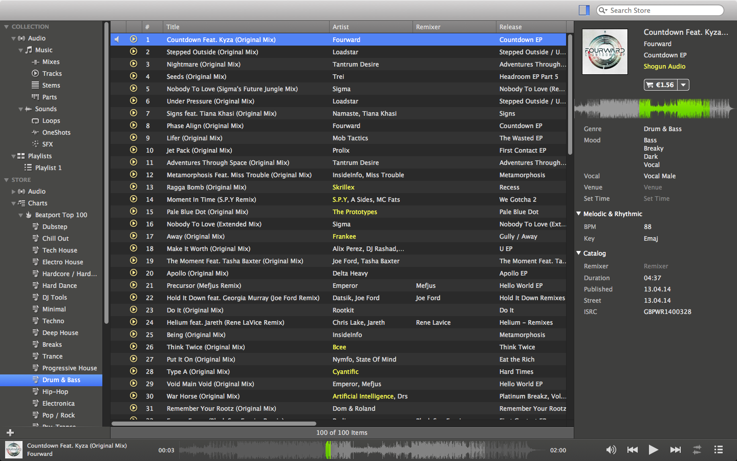 - Erweiterte Filterfunktion für die eigene Sammlung und den Beatport Shop
