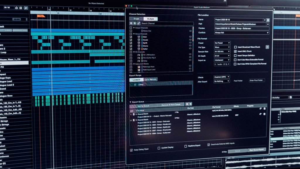 Einfacher, schneller und genauer heißt es hier. Ab sofort kann die Exportauswahl mit der Auswahl im Projekt synchronisert werden und es werden eigene Dateipresets erstellt, die man bei Bedarf jederzeit wieder aufrufen kann. Außerdem kann der gesamte Signalpfad inklusive Masterbus exportiert werden. Um das Ganze noch komfortabler zu gestalten werden alle Export-Aufgaben gesammelt und dann nacheinander automatisch abgearbeitet.