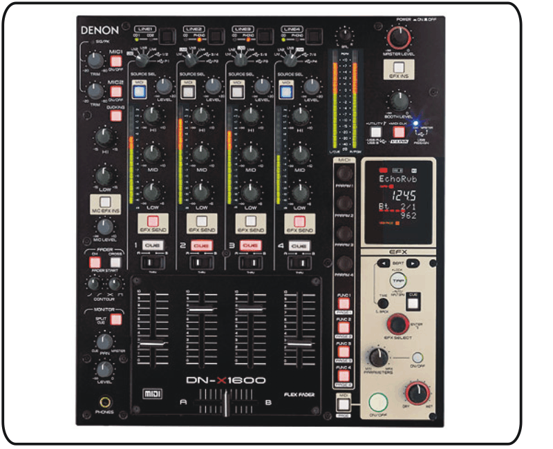 Denon erweitert die Mixerpalette und bringt mit dem DN-X1600 ein midifähiges 4-Kanal-Effektpult mit integriertem Audio-Interface und V-Link.