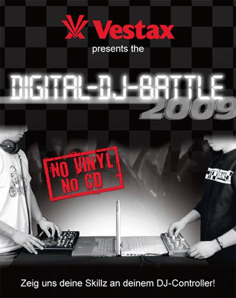 Grundbedingung ist der Verzicht auf Platten, CDs oder DVS. Der Aufruf von VESTAX geht an alle, die nur mit einem Rechner plus Controller die Crowd rocken. Welche Hard- oder Software genutzt wird ist dabei egal, man muss lediglich ein Video einsenden und die Jury mit seinen Skillz überzeugen. Nach dieser virtuellen Vorrunde folgt zur Musikmesse das Finale, wo die vorab ermittelten vier besten Digital-DJs gegeneinander antreten.