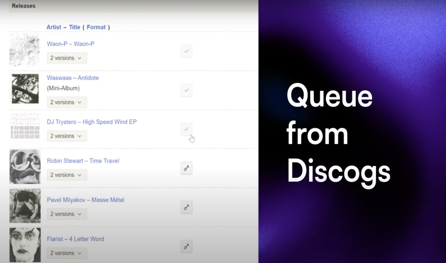 Es ist ein kleines Schaufel-Symbol, das den Player künftig öffnen wird. In einem Seitenfenster werden die Titel gesammelt und in einer Warteschlange hintereinander abgespielt. Auch Playlisten lassen sich dort erstellen. Auf diese Erweiterung können alle bei Discogs angemeldeten User zugreifen.