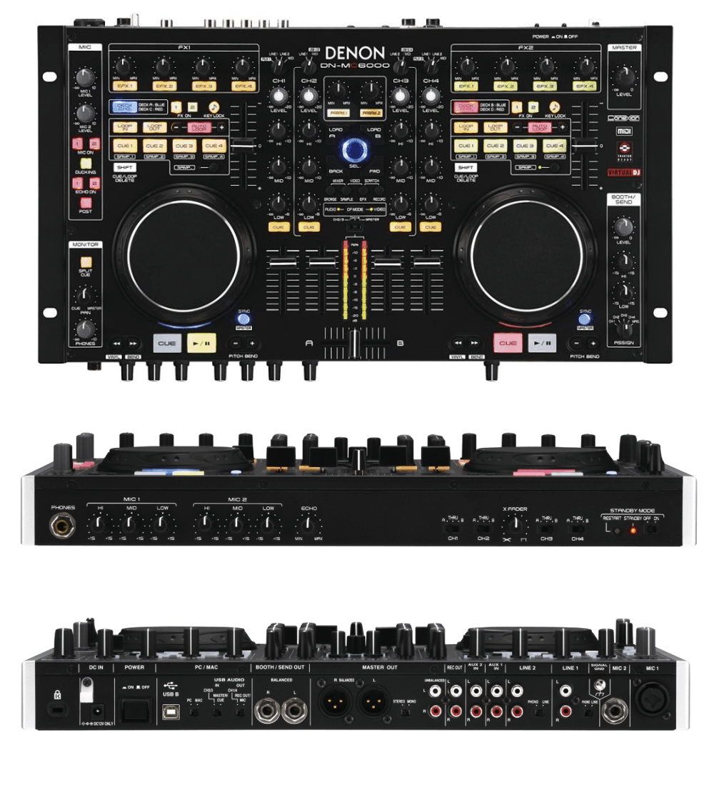 Schon das beiliegende 19" Rackmount-Kit und die zwei Mikrofoneingänge, mit Ducking Funktion, 3-Band EQ und Echo, dürften den MC6000  für mobile DJs interessant machen. Verarbeitung und Buttons in bekannter Denon Qualität. 24bit Soundkarte eingebaut, 4-Kanalmixer, auch allein, ohne Rechner nutzbar. Kommt in Amerika mit Virtual DJ, in Europa mit Traktor LE. Für vier Decks benötigt man auch hier einen Vollversion von Traktor Pro.