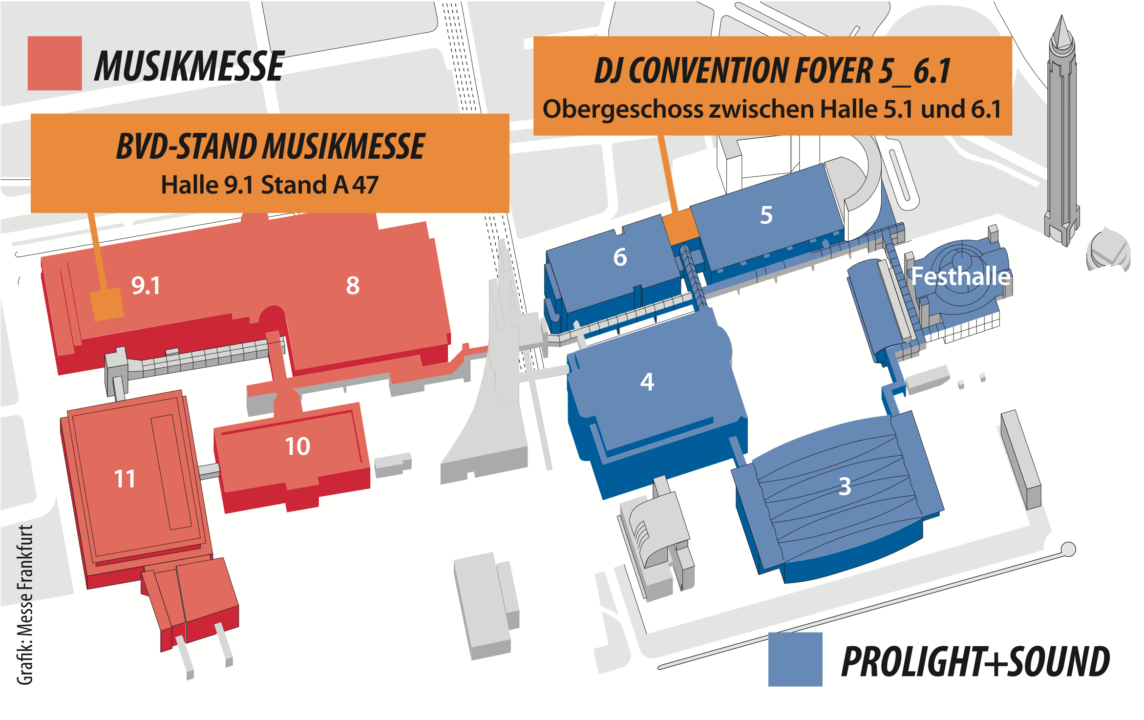 Der Berufsverband Discjockey e.V. wird mit einem eigenen Stand sowohl auf der DJCon (blau gekennzeichnet) als auch auf der Musikmesse (rot gekennzeichnet), die vom 07.04. – 10.04. stattfindet, vertreten sein.
