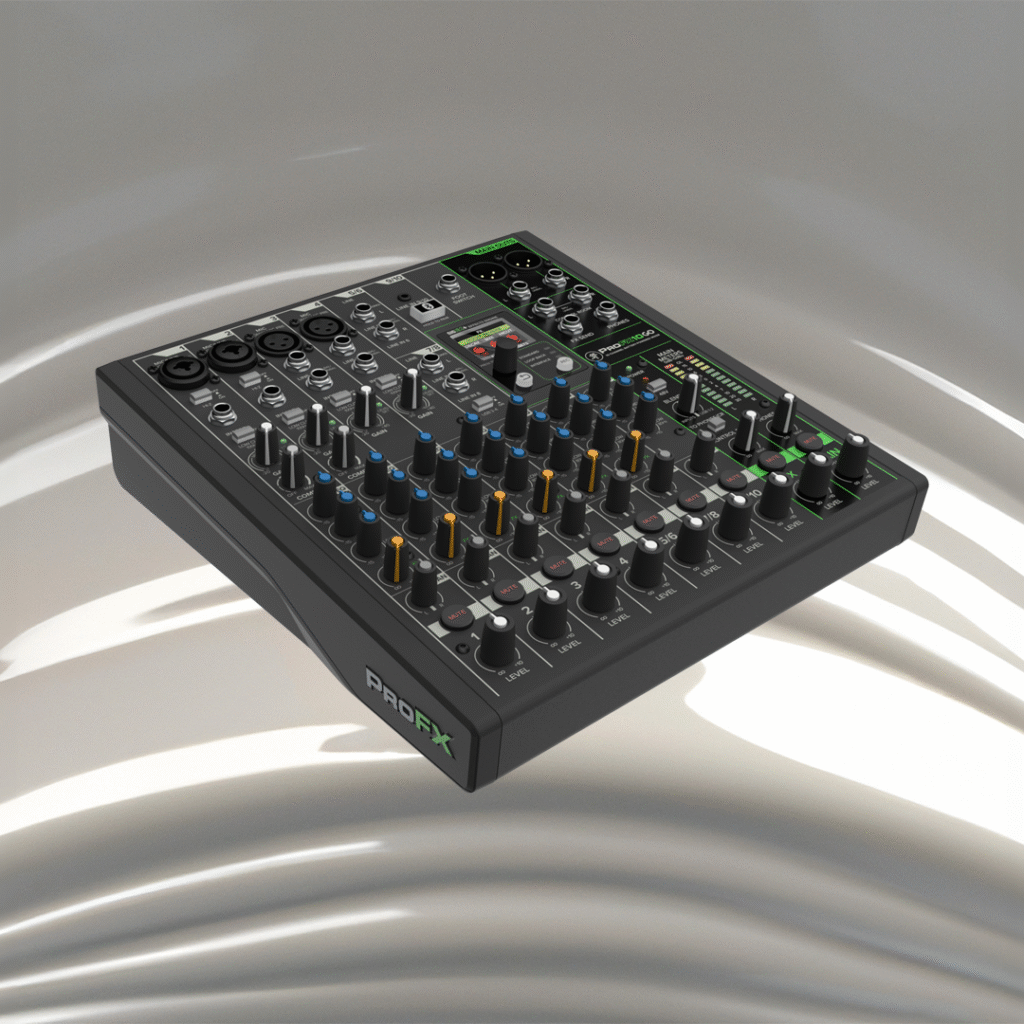 Dabei punktet der ProFX10 Go nicht nur mit klassischen analogen Anschlüssen, sondern auch mit modernen Extras wie bidirektionalem Bluetooth und einer integrierten USB-Soundkarte. So lassen sich Zuspieler schnell einbinden, Mitschnitte unkompliziert realisieren oder sogar Streams und Content-Formate umsetzen. Onyx-Preamps, die praktischen One-Knob-Kompressoren und die internen Effekte runden das Gesamtpaket sinnvoll ab und machen den Mixer zu einem vielseitigen Werkzeug für jede Situation, in der es schnell, zuverlässig und gut klingend funktionieren muss. Robust verarbeitet und angenehm transportabel ist der ProFX10 Go damit genau die Art von Utility-Device, die man einmal ins Setup integriert und dann nicht mehr missen möchte.