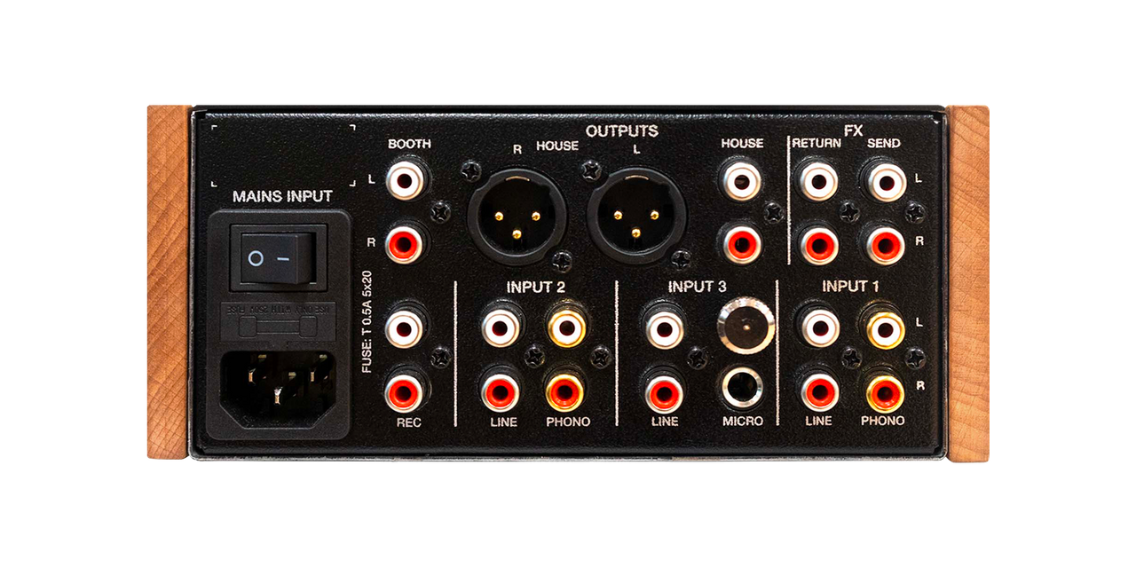 Zwei Kanäle, jeweils mit einem 3-Band EQ (laut Ecler full cut) stehen zur Verfügung, die einen eigenen Send (Post- und Pre-Fader) besitzen. Dazu kommt ein weiterer Kanal, der als +1 angegeben wird. Dieser dient primär als Mikrophon-Eingang und hat einen 2-Band EQ. Theoretisch kann dieser aber auch per Line-In als dritter Kanal genutzt werden. Abgerundet wird der Mixer durch einen 3-Band Master Isolator. Die Kopfhörer werden vorne per 6,3 mm oder 3,5 mm Klinke angeschlossen und hier finden wir auch die Volume- und Mix-Regler.