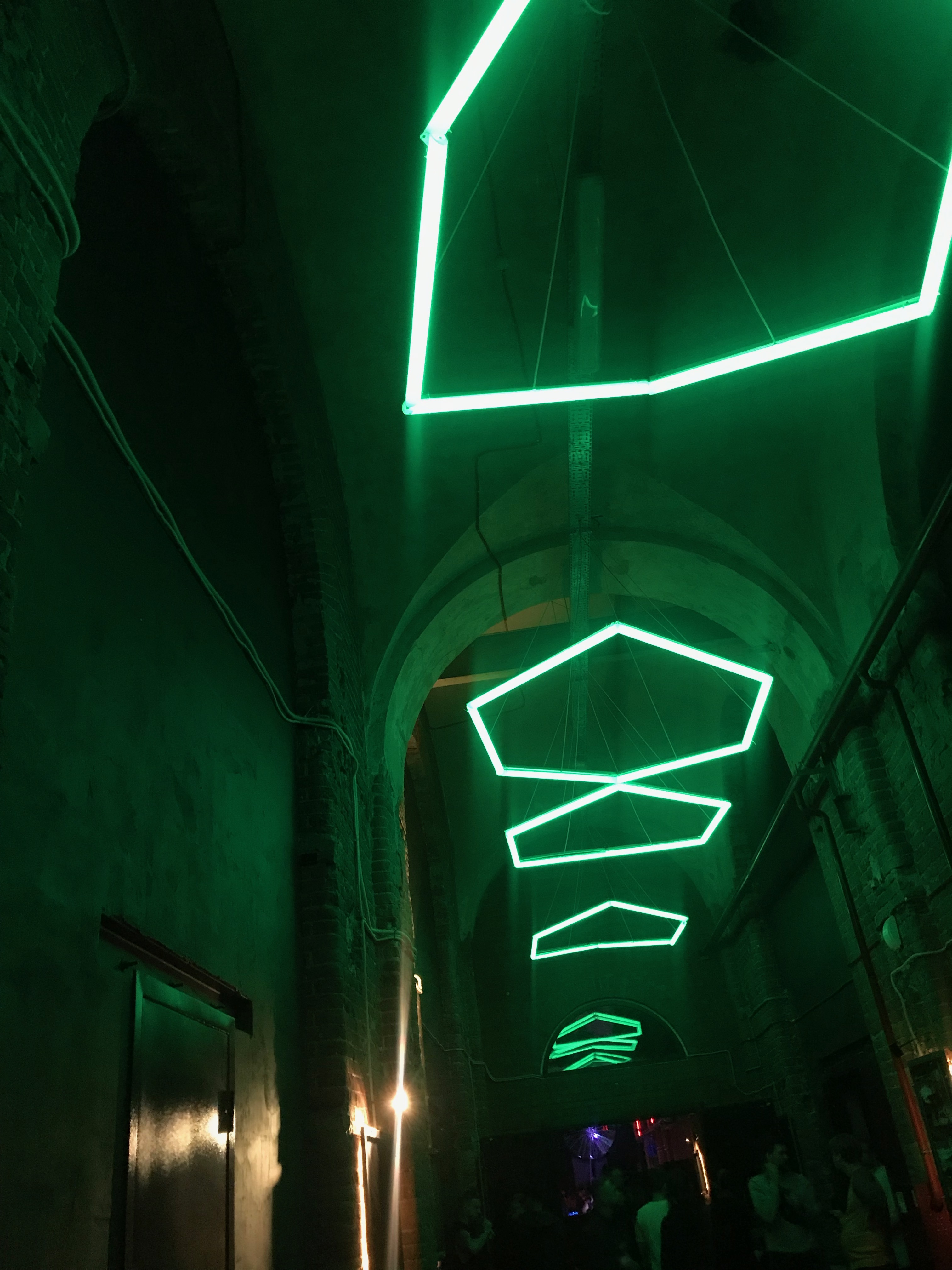Auf den verschiedenen Stages passiert in der Razin-Fabrik musikalisch Ungeheuerliches, es ist krass, enorm laut und es ergreift die Menschen – wortwörtlich. Es wummert so stark durch den Körper, nicht nur die Ohren vibrieren. Die Decken sind aufgerissen, der Boden nicht begradigt. Die alte Brauerei kocht, das enge, dunkle Treppenhaus erinnert beängstigend an die vollen Rolltreppen der U-Bahn zur Rushhour. „Brandschutz“, denke ich. Außer mir denkt in diesem Moment, glaube ich, niemand an dieses Wort... Eine Person in einem langen, luftigen Mantel und unheimlich hohen Schuhen schiebt sich vorbei, vier Frauen stoßen an, sie trinken gemeinsam Vodka.