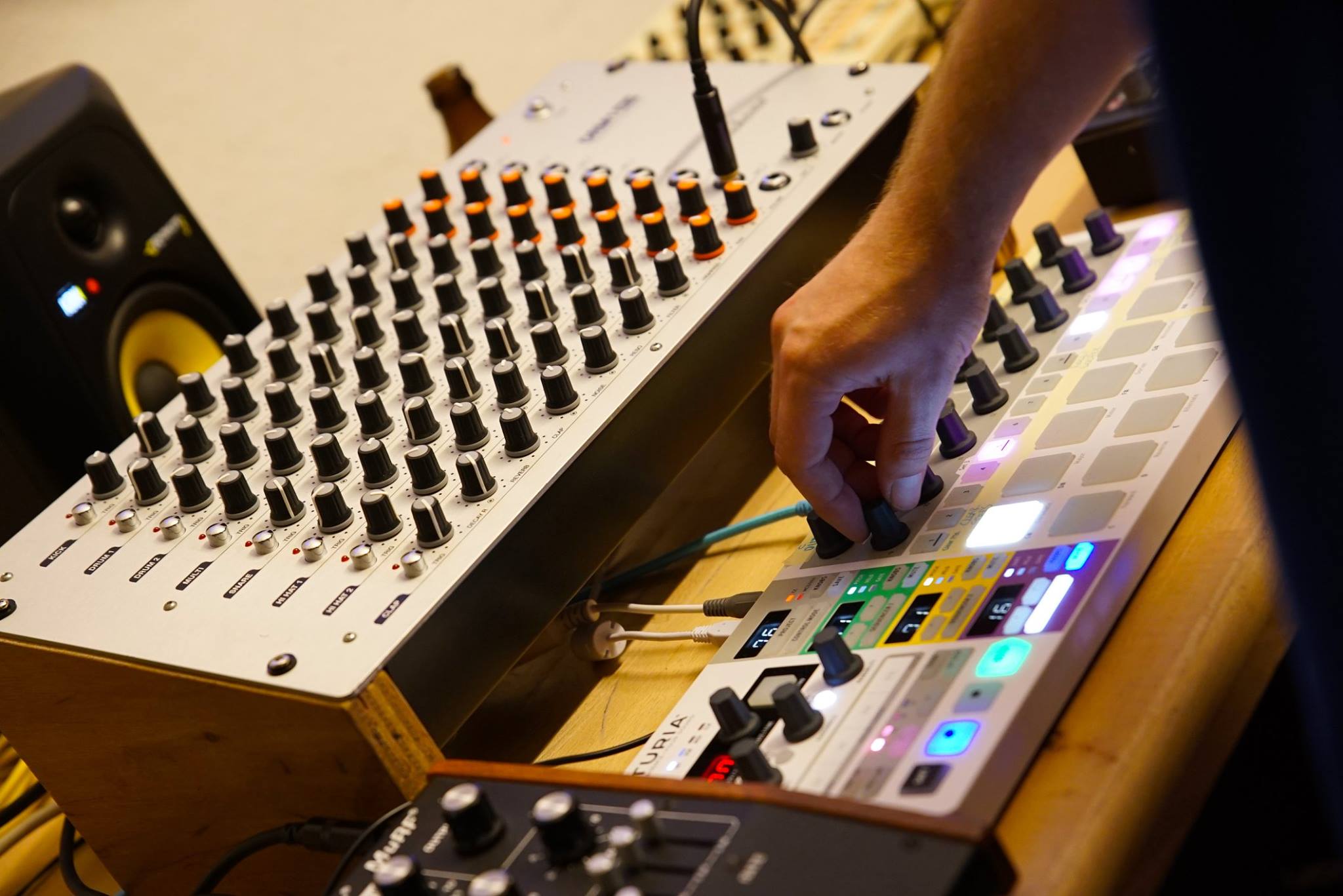 „Common Ground ist ein Projektraum von KOMA Elektronik, einer kleinen Firma, die elektronische Instrumente herstellt“, erklärt Storemanagerin Zuzana Přikrylová die Idee hinter dem Laden in Berlin-Neukölln. „Man kann gebrauchtes oder neues Equipment kaufen oder seine eigenen Kits löten. Wir stellen das Werkzeug und organisieren Workshops, um Leute zu ermutigen, neue Sachen auszuprobieren.“ Einer dieser Workshops ist „Gear Talk“, der an diesem Abend zum zweiten Mal stattfindet. Im Nebenraum drängen sich etwa 25 Leute zwischen MIDI-Keyboards und Synthesizer, sie sitzen auf Plastikstühlen oder dem Boden. Einige inspizieren die blinkenden Geräte auf dem Tisch, während Zuzanas Kollegin Isabella Douzoglou am Beamer herumschraubt. Der wirft ironischerweise ein trotziges „No Signal“ an die weiße Wand.