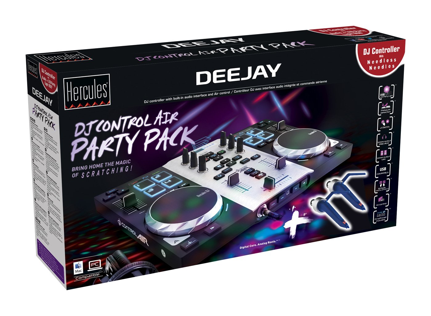 Ausgestattet mit dem neuesten Sprößling der Hercules-Familie, besteht dieses Pack aus dem DJControl AIR, einem robusten all-in-one Mobile-Controller mit 8 Pads, eingebauter Soundkarte und den wesentlichen Mix-Features, und 2 Concorde Tonabnehmern, die im DJ-Booth beim Auspacken den Eindruck eines Pro DJs erwecken. Dieses System ist extrem einfach zu nutzen: Einfach die Tonabnehmer beim Ankommen in der DJ-Kanzel auspacken und auf die Plattenteller legen. Damit werden die Blicke der Zuschauer und DJ-Kollegen sofort dir gehören.