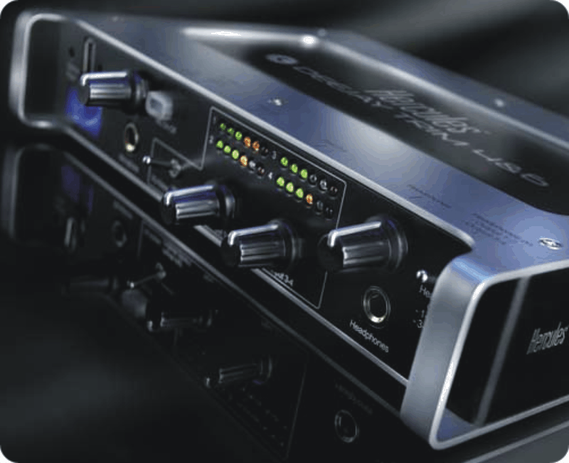 Das Hercules Audiointerface verfügt über vier Audioausgangskanäle: Zwei +4dBu ¼” Klinkenausgänge für PA Equipment und vier -10dBv RCA Ausgänge für Mischpulte und konventionelle Verstärker. Der sechsfache Ausgangsmodus ermöglicht Nutzern zwei Stereotracks separat an externe Mixer zu transferieren, während ein dritter Stereotrack für Samples, Loops und Effekte hinzugefügt werden kann. Zusätzlich zu diesen Ein- und Ausgängen sind ein Mikrofoneingang mit Talk-Over-Funktion, ein Kopfhörerausgang mit Lautstärkeschalter und Kanalselektor (Kanäle 3 & 4 zum Vorhören und Kanäle 1 & 2 für den Mix) vorhanden. Durch seinen 3-Port-Hochgeschwindigkeits-USB-Hub kann das Hercules Interface an einen DJing Controller oder an eine externe Speicherquelle (USB Stick oder Festplatte) angeschlossen werden. Das enthaltene Netzteil vermeidet jegliche Abweichungen im Soundpegel, die durch Fluktuationen in der Stromversorgung am USB-Bus durch den Computer auftreten können."