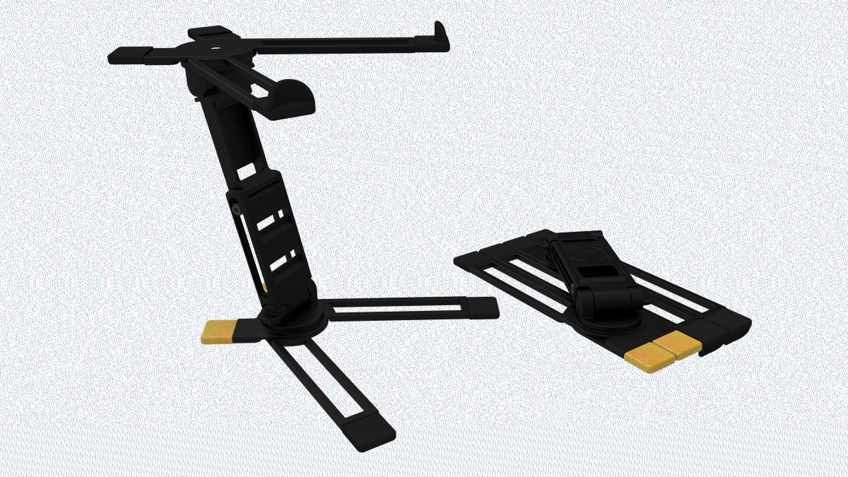 Wer einen wirklich stabilen Laptopständer sucht, der auch höhere Belastungen aushält, sollte sich mal den Hercules HCDG-400B genauer anschauen. Durch den verstellbaren Winkel der Füße lässt sich der HCDG-400B auch unter einen Plattenspieler schieben. Die Abstellfläche und der Fußbereich sind jeweils noch mal mit Gelenken versehen, die nicht einsacken. So kann man auch bei einer höheren Belastung die Abstellfläche anwinkeln. Der HCDG-400B kann in drei Stufen in der Höhe verstellt werden. Vollausgefahren müsste man ungefähr auf 40cm kommen (Ich habe leider vergessen das zu messen). Zugeklappt und in einer wasserabweisenden Neoprentasche verpackt, lässt sich der Hercules HCDG-400B gut in einem Rucksack oder Plattentasche transportieren.