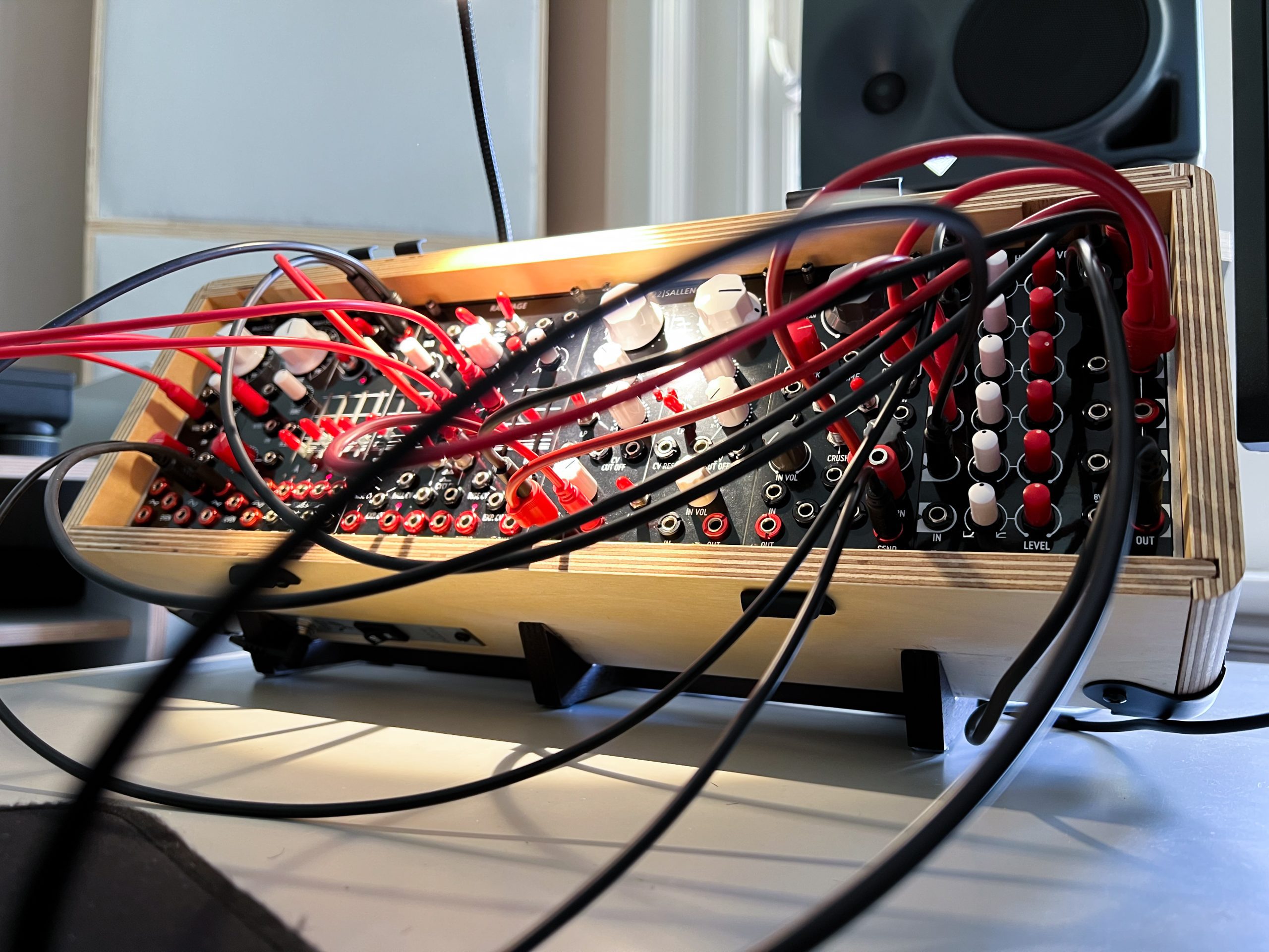 In den letzten Jahren habe ich einen Großteil meiner Hardware verkauft und nur eine kleine Gruppe verschiedener Instrumente behalten. Mein Workflow umfasst sowohl Hardware als auch Software, und ich finde, dass die Kombination aus beidem für mich am besten funktioniert. Ich mag die Möglichkeit, das, was ich aufgenommen habe, zu bearbeiten und zu manipulieren, und nicht nur einen Live-Ansatz zu haben. Zu meinem wichtigsten Equipment gehören ein kleines analoges Eurorack-Gehäuse, das ich selbst aus Bauteilen zusammengelötet habe, ein modifizierter Korg MonoPoly und eine Roland TR-8S Drum Machine. Bearbeitungen und Effekte führe ich dann am Computer durch.
