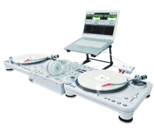 “Das Auge spinnt mit“ sagt der Volksmund. Im Fall des neuen Reloop DVS (PC-Edition, MAC Edition kommt demnächst) enthält die Verpackung zwei weiße Timecode-Vinyl, eine Installations- sowie zwei Timecode-CDs und eine Schnellstartanleitung inklusive Tastaturaufkleber. Dazu gibt es ein weißes Audiointerface, sowie - konsequenterweise ebenfalls in weiß gehaltene - Anschlusskabel.