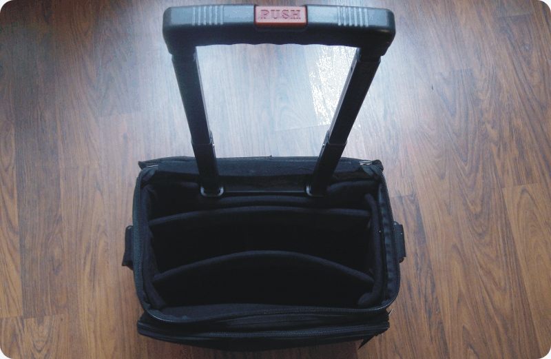 Mir war es sehr wichtig, für zukünftige Equipmentwechsel und -erweiterungen gerüstet zu sein, wofür sich dieser Trolley wirklich hervorragend eignet, denn Haupt- sowie Frontfach lassen sich indivduell abtrennen. Hierfür stehen zwei Trenner in voller Breite und zwei weitere schmale zur Verfügung, die sich per Klett beliebig positionieren lassen. Wem das nicht genügt oder mit Spezialwünschen aufwartet, kann sich durch die Klettvariante schnell und einfach auch eigene Trenner vom Schneider oder von der Mama machen lassen.