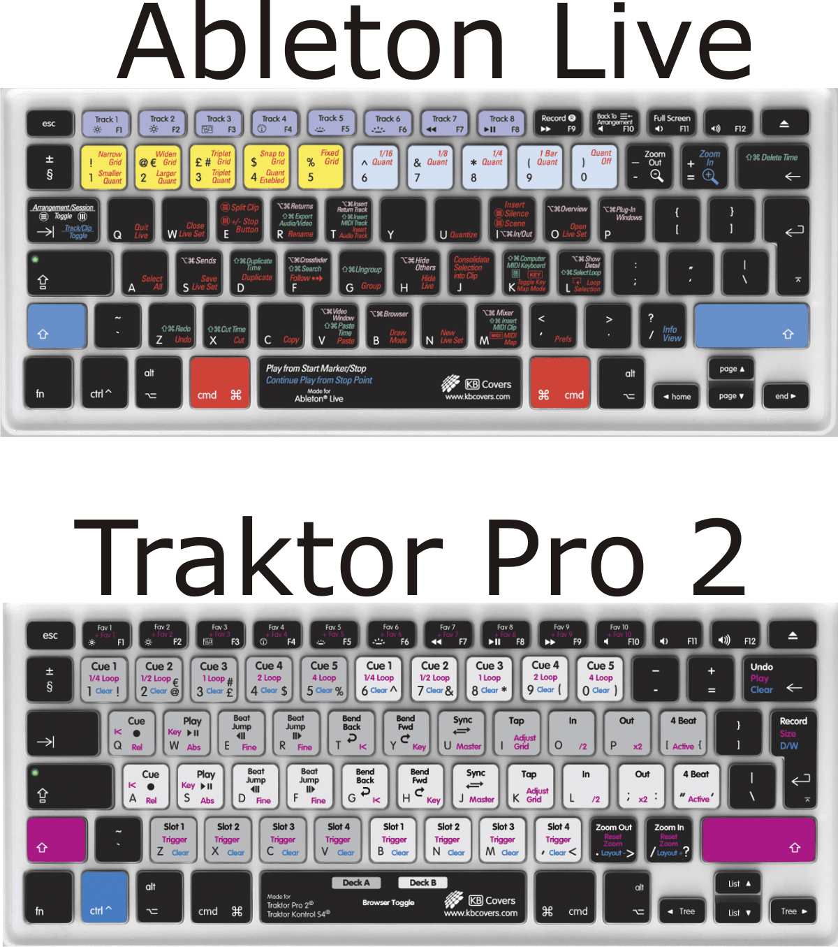 Wie schon bei den bereits erhältlichen Cover für Serato Scratch Live & Traktor Pro, sind auch die beiden Neuen für alle 13-Zoll MacBook (alt & neu) sowie der neuen MacBook Pro Reihe (13, 15 & 17 Zoll) passgenau angefertigt und erfüllen zweierlei Aufgaben: sie schützen die Tastatur vor Verschmutzung und bieten gleichzeitig eine Übersicht aller Hotkeys & Shortcuts für das jeweilige Programm.