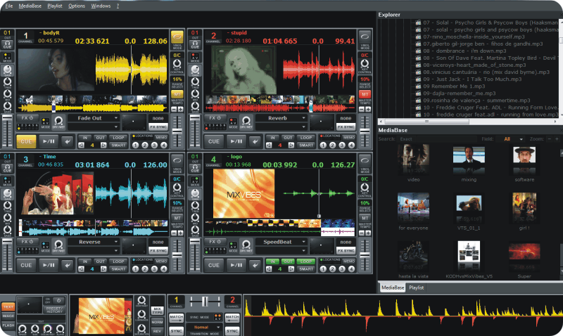 Geladen und gemixt werden können alle gängigen Audio- und Videoformate. Dazu sind Texteinblendungen, taktsynchrone Effekte, Überblendungen und die Einbindung einer Live-Kamera möglich. Dazu ist die VFX-Software mit MIXVIBES Timecode kompatibel, womit auch einer Steuerung per Vinyl oder CD nichts im Weg steht.