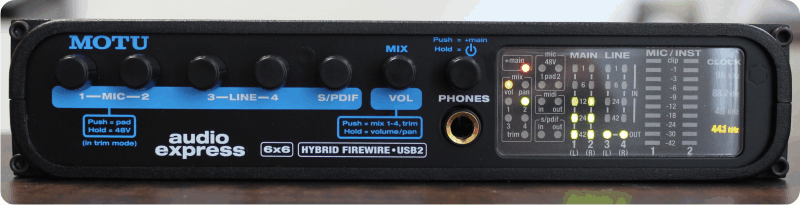 Als Recording-Interface macht die Audio Express eine mehr als gute Figur. Die Eingangssignale können mit Zusatztools wie Oszilloskop, X-Y Plot oder Spektrogramm graphisch überwacht und per Direct Monitoring latenzfrei über Kopfhörer abgehört werden. CueMix FX bietet eine vollwertige Mixing-Konsole mit zahlreichen Einstellungs- und Routingmöglichkeiten und beim zeitgleichen Betrieb mehrerer kompatibler MOTU-Interfaces werden die Ein- und Ausgänge entsprechend kaskadiert und summiert angezeigt.