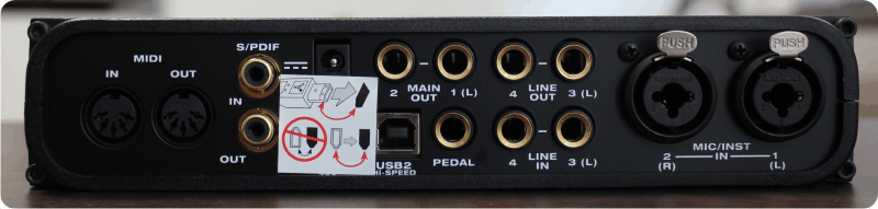Der User hat also die Wahl, wie er das Gerät mit dem Rechner verbinden will. Doch kein Vorteil ohne Nachteil: beim Betrieb über USB ist das beiliegende Netzteil zwingend erforderlich, mit Firewire hingegen reicht die Bus-Power zur Stromversorgung. Aber auch hier gibt es eine Einschränkung, denn die Audio Express kann nur an einem 6-Pin Firewire-Anschluß angedockt werden. Die vor allem bei Laptops üblichen 4-Pin Konnektoren scheiden dabei also aus.