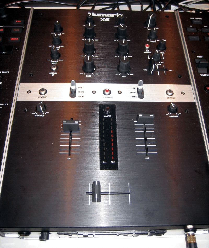 "X5" bereit, der so brandneu war, daß sogar die offiziellen Numark-Showcase DJ's (u.a. DJ Eskei83) ihn auf der Messe das erste Mal sahen. Der X5 ist grob gesehen die auf zwei Kanäle reduzierte Variante des X7 mit weniger Features (und ohne MIDI-Funktion), der zusammen mit 2 V7 einen modularen NS-7 bildet, optisch und technisch jedenfalls zum Verwechseln ähnlich.