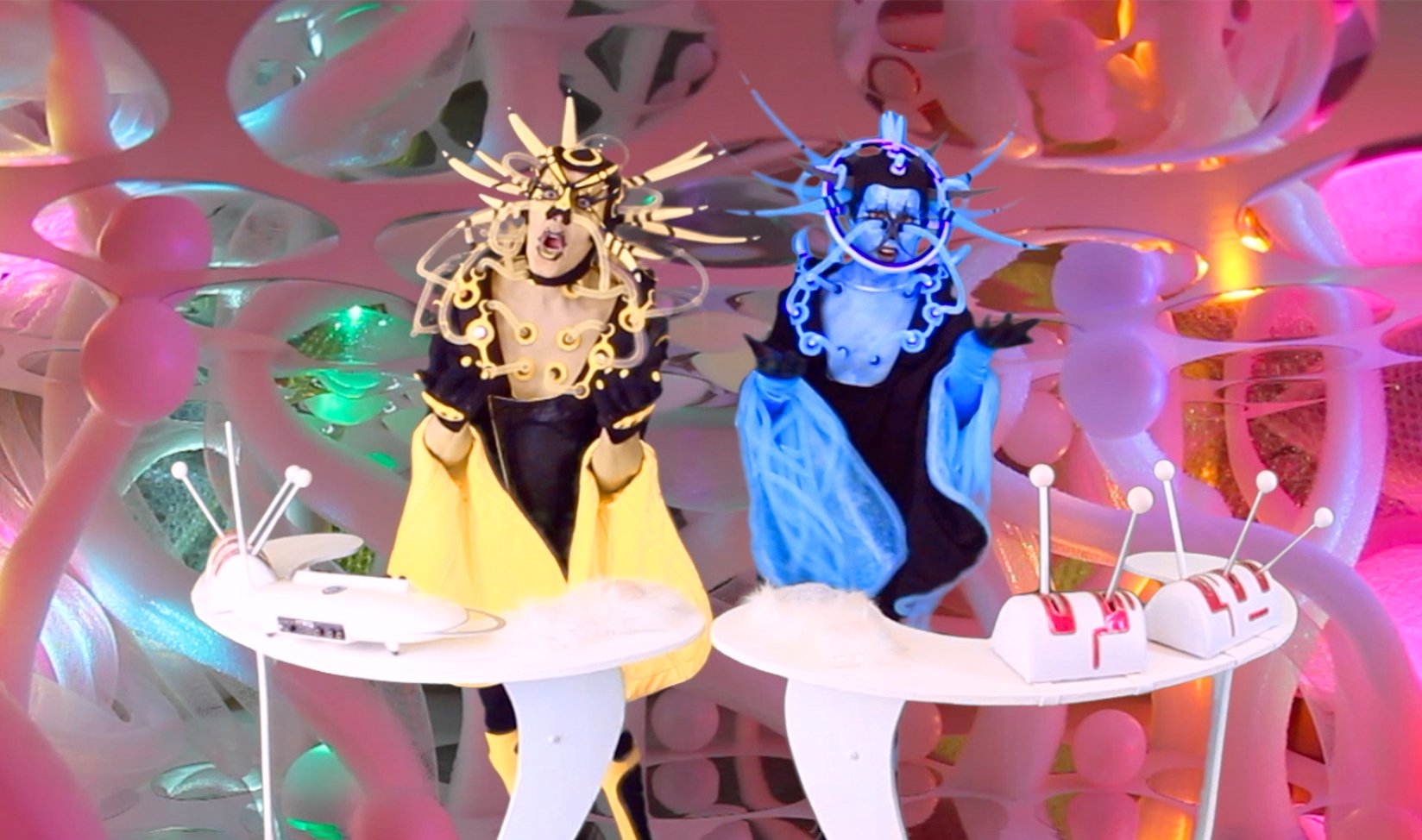 Zurück zum Krake Festival. Besonders beeindruckt hat mich an diesem Abend die Performance von Devin Mohr und Jochen Kronier, die in fabulösen Alien-Suits getanzt und performt haben und dabei immer wieder aus ihrer bunten Welt heraus auf die Erde blickten.