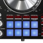 Die 16 Performance-Pads können in vier Modi arbeiten – Hot Cue, Roll, Sampler und Slicer – und erweitern die kreativen Möglichkeiten beim Mash-up von Songs um ein physikalisches Element. Abhängig von der Anschlagstärke der LED-beleuchteten Pads ändert sich im Velocity-Modus zudem die Lautstärke der Samples.