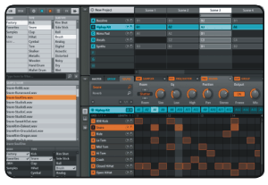 Die Applikation Maschine ist im Grunde genommen ein mehr oder weniger komplettes Studio. Auf den ersten Blick gibt es nichts, was man vermissen könnte, da man erstmal alles finden muss, was sich einem bietet. Und geboten wird hier viel! Wirklich viel! Zahllose Soundsamples für alle erdenklichen Situationen, massig Instrumente und auch ganze (Artist-)Kits, die bereits mit fertigen Arrangements aufwarten und somit einen guten ersten Eindruck vom Klangspektrum geben. Wie zu Beginn erwähnt kann ich hier nur aus der Sicht eines Produktions-Neulings sprechen, aber ich fand mich sehr schnell zurecht und hatte binnen kurzer Zeit mein erstes eigenes Drum-Pattern zusammengefrickelt. Über das Manual bekam ich auch schnell eine Ahnung von Stufe-2 Funktionen, die sich zu Beginn nicht ganz so intuitiv erschlossen haben. Aber auch mit Try&Error kann man sich recht bequem immer tiefer bis zum Getriebe vorarbeiten.