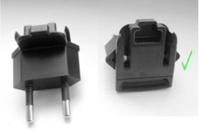Die Adapter können im ungünstigsten Fall auseinander brechen, wenn man das Netzteil aus der Steckdose zieht. Dabei werden die Kontaktstifte freigelegt und es besteht die Gefahr eines elektrischen Schlags, wenn man die Stifte berührt.