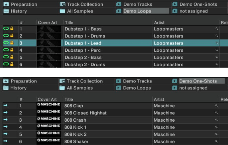 Im Browser bzw. in den Playlisten sind in der ersten Spalte zwei neue Symbole zu finden, die die damit bestückten Tracks als Loopsample bzw. One-Shot markieren. Dies geschieht über das Kontextmenü und kann jederzeit geändert werden. Dies gibt nicht nur optisch die Info, um welche Art Sample es sich handelt, sondern stellt beim Laden des Samples in einen Slot diesen auch gleich auf den richtigen Modus um.