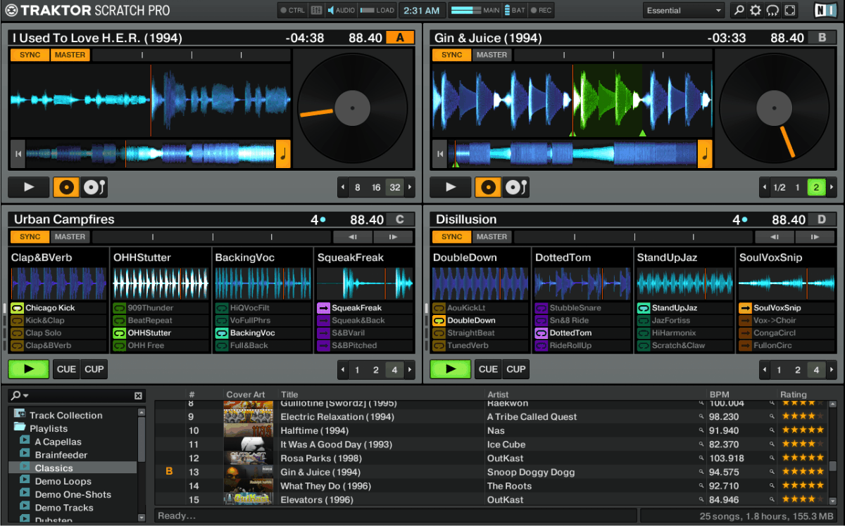 Der Mixer besitzt ein robustes Aluminium-Chassis und ist mit Innofader Line- & Crossfader ausgestattet. Die Soundkarte arbeitet mit 24bit und dürfte klangtechnisch den Kollegen aus gleichem Hause (TA10, TA6, S4, S2) ähneln. Jeder der beiden vollwertigen Kanalzüge besitzt einen Phono- & Line-Eingang für analoge Gerätschaften oder eben die Timecode-Zuspieler, einen Dreiband-EQ sowie ein Bipolar-Filter. Master- & Boothausgang sind getrennt voneinander regelbar, der separate Mikrofoneingang kann wahlweise auch mit einer linefähigen Auxquelle bestückt und somit als dritter analoger "Notkanal" genutzt werden. Praktischerweise hat NI an die Nutzung zusätzlicher Controller gedacht und dem Z2 einen Zweifach USB-Hub spendiert, an dem sich weitere Steuereinheiten anschließen lassen. Dieser Hub ist USB2.0 Standard und selbstverständlich self-powered, also von der Mixerstromspeisung mitversorgt.