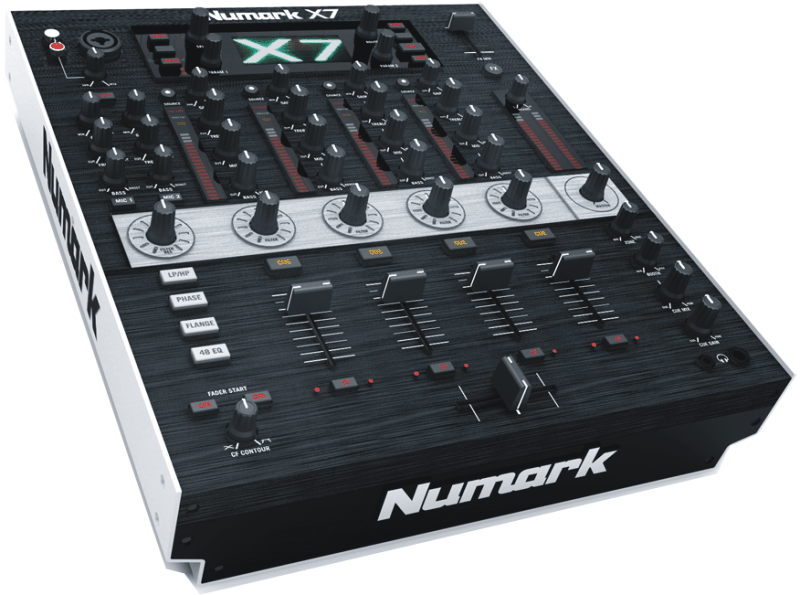 Mit dem X7 liefert NUMARK auch den passenden Mixer zum V7 Controller. Der 4-Kanal Clubmixer verfügt über zwei USB-Interfaces, so das zwei DJs glichzeitig ihre Laptops anschließen können. An den X7 werden wiederum - per Linkfunktion - die V7 Controller angeschlossen. So vernetzt lassen sich Steuer- und Audiosignale zwischen V7, X7 und Software übertragen oder auch zwei Laptops miteinander synchronisieren.