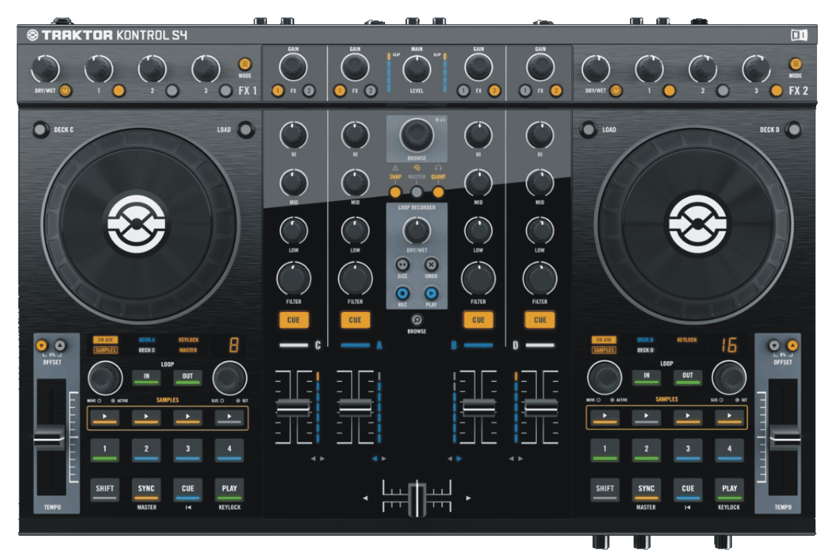 Wie schon im Teaser-Video vor wenigen Wochen zu sehen war, handelt es sich dabei um eine Vierdeck-Konsole mit integrierter Mixereinheit. Die gezeigte Software ist ebenfalls eine Neu- bzw. Umentwicklung und speziell auf den Controller zugeschnitten. Gehen wir die wichtigsten Features der Reihe nach durch: