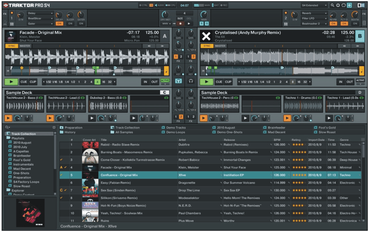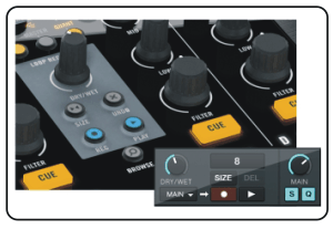 Neu hinzugekommen ist ein weiterer Deckmodus, der wahlweise aus allen Decks einen Sampleplayer macht, in den sich bis zu vier Samples ablegen lassen, die dann als Loop oder One-Shot abgespielt werden können - wahlweise auch synchron zur Masterclock oder dem Masterdeck. Jeder Sampleslot ist dazu noch mit einem separaten Volumeregler und Filter ausgestattet.
