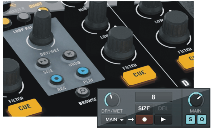 Wem das noch immer nicht genügt, der kann über einen Loop-Recorder das laufende Signal eines oder aller Decks global abgreifen und dieses sogar per Overdub immer weiter layern - und das optional auch per Fußschalter, den man direkt am S4 anklemmen kann.