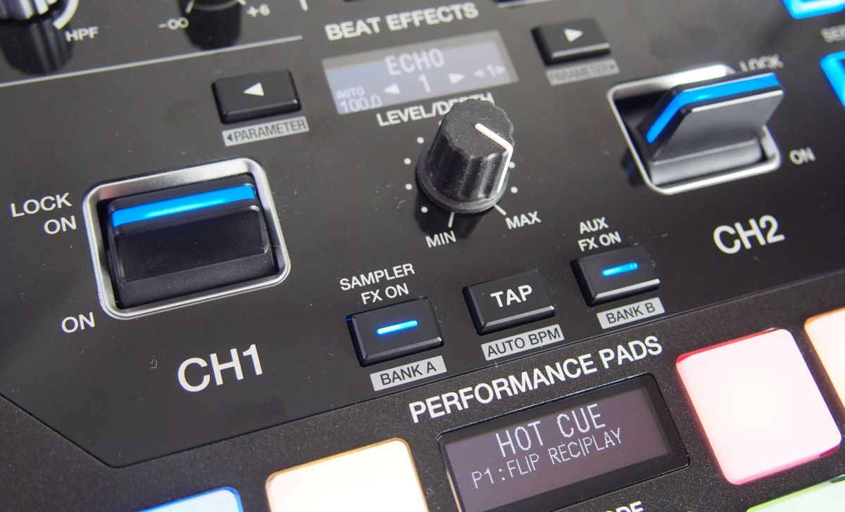Neben den Decks können Effekte auch auf den Sampler oder das Aux-Signal gelegt werden. Die Vielzahl an Möglichkeiten erklärt eventuell, warum PIONEER auf eine (externe) Effektschleife verzichtet hat. Alles Top, irgendwie ist aber immer ein Effekt aktiv. Das heißt er blinkt. Solange man nicht den Switch betätigt, schlägt sich das nicht klanglich nieder. Es ist aber etwas irritierend. Vielleicht gibt es irgendwo eine geheime Einstellung dafür bzw. dagegen, die ich nicht gefunden habe.