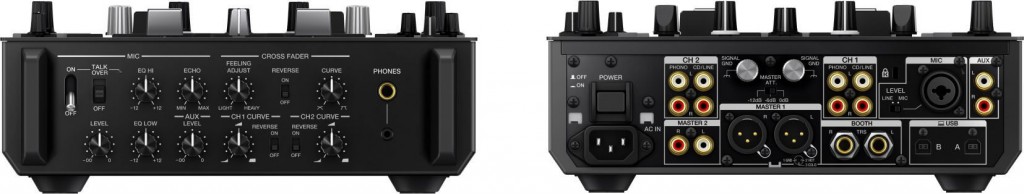 Nach Jahren scheint sich endlich auch die Erkenntnis durchzusetzen, dass mehrere DJs einen Mixer nutzen. Genauer gesagt: DJs mit Laptops. Zwei USB-Buchsen erlauben die Verbindung zu zwei Rechnern, via Quellschalter läßt sich nahtlos umschalten. Über die selbe Auswahlmöglichkeit kann auch ein DJ vier Decks in Serato DJ nutzen. Vorderseitig ist ein Mikrokanal mit 2-Band EQ und eigenem Echo-Effekt regelbar. Auch das Level eines AUX-Kanals ist hier zu justieren. Was fehlt? Send/Return ... aber nur dann, wenn man mit den Effekten in Serato und den bordeigenen noch nicht genug Potential sieht.