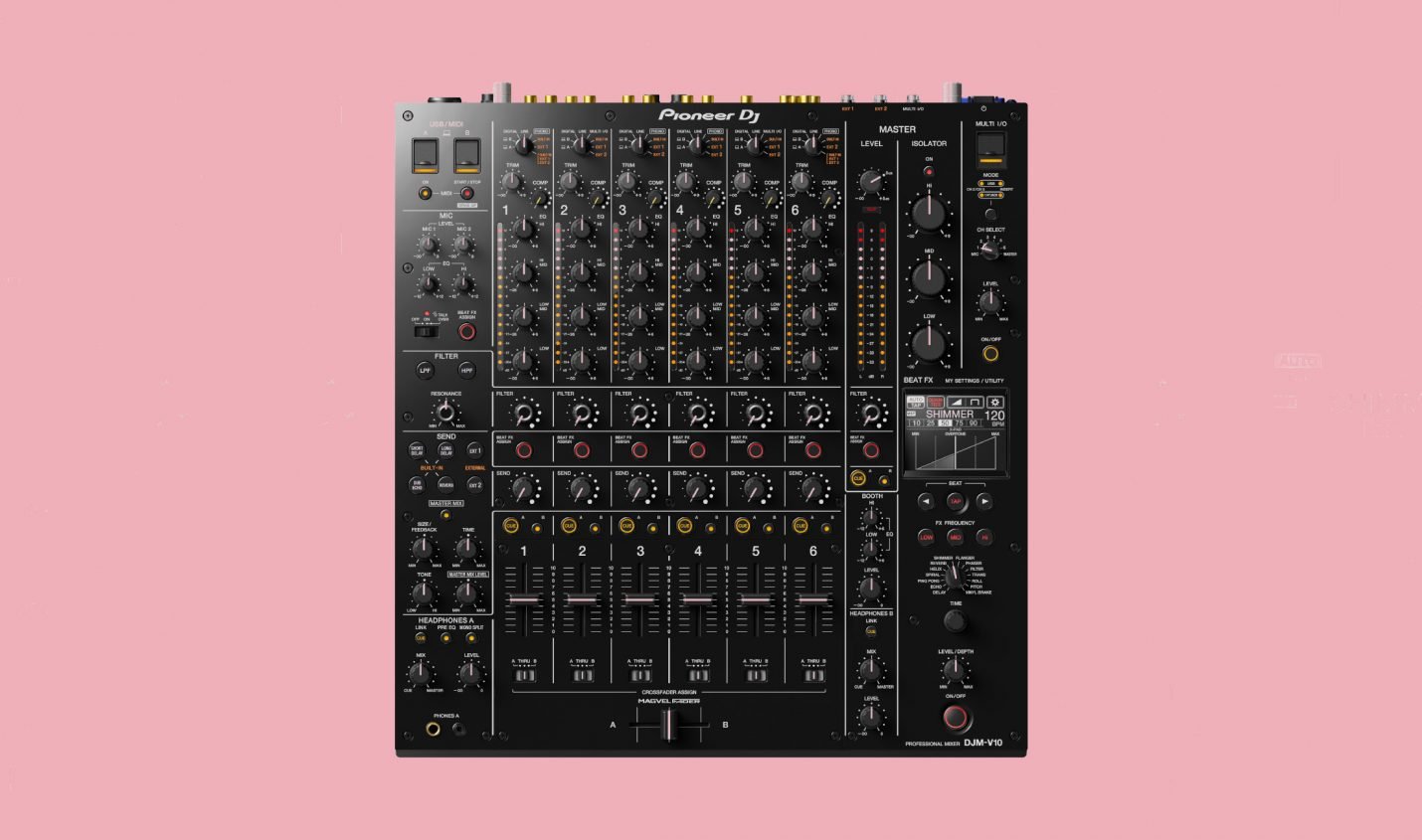 Der DJM-V10 ist das größte Schiff aus dem Hause Pioneer DJ. Bei der NAAM 2020 wurde der 6-Kanal Mixer mit allerlei frischen Features wie einem 4-Band EQ und neuen Filtern vorgestellt. In seiner Bauart erinnert der Mixer dabei an Richie Hawtins Model1, übrigens auch preislich mit den ca. 3300 veranschlagten Euro.