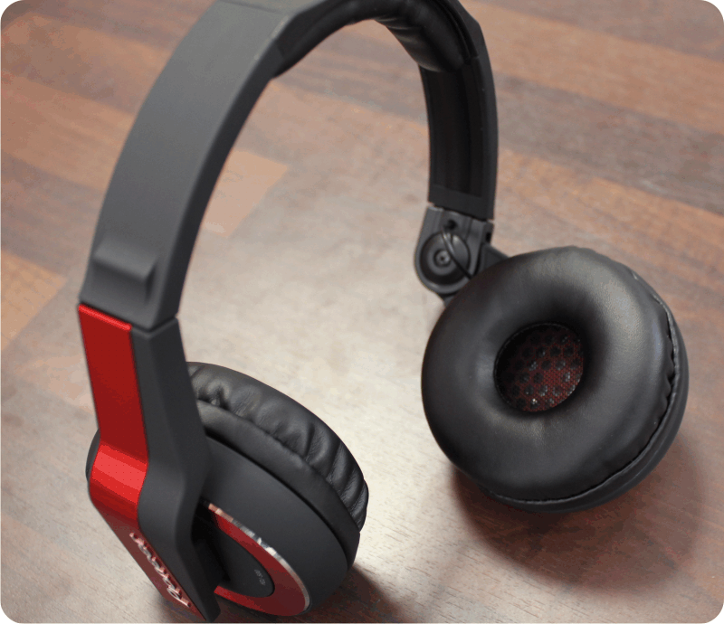 Die kabellose Ohrmuschel läßt sich von ihrer senkrechten Ausgangsposition aus jeweils 60° nach beide Seiten schwenken, was das einohrige Abhören erleichtert. Der Schwenkmechanismus ist dabei über ein Drehgelenk realisiert worden und wirkt ziemlich robust, was einer groberen Handhabung sehr zu Gute kommt. Dreh- und Schwenkkonstruktionen bei Kopfhörern waren und sind ja bekannte Schwachstellen bei vielen Headphones, aber beim HDJ-500 braucht man sich dabei eigentlich keine allzu großen Sorgen machen. Auch die Kabelverbindungen zwischen Ohrmuscheln und Kopfbügel scheinen auf den ersten Blick keiner besonderen Belastung ausgesetzt zu sein, was die Langlebigkeit unterstreichen sollte.