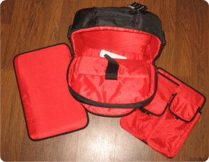 Der Probelauf mit VMS4 und 15" Laptop verlief ohne Komplikationen. Allerdings ist die Herstellerangabe bzgl. der maximalen Laptop-Größe mit 19 Zoll schon sehr gewagt, denn wie man auf dem unteren Bild erkennen kann, füllt auch mein 15er Vaio das Fach bereits ganz gut aus; für 17 Zoll scheint auf jeden Fall noch ausreichend Luft zu sein, aber ob sich ein Neunzehner ohne klaustrophobische Attacken drin wohlfühlt, wage ich ein wenig zu bezweifeln.