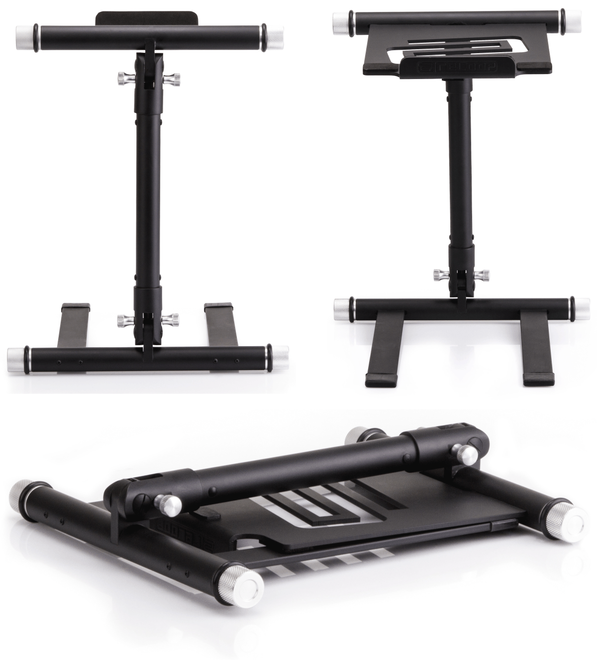 Letzter im Bunde wäre ein Laptop-Stand, nämlich der CRA... ähm, RELOOP LAPTOP STAGE, ein laut Hersteller stabiler Laptop Ständer für Digital-DJs, Musiker und Produzenten, der platzsparend zu transportieren ist und in jeder gängigen Laptop Tasche Platz findet, sich schnell und einfach montieren und aufbauen lässt und eine extra flache Konstruktion darstellt.