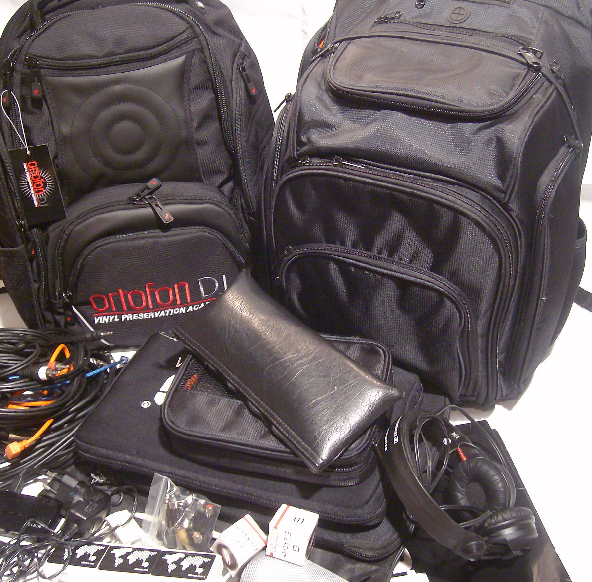 Testlauf -> Es liegt nahe den Rucksack von ORTOFON anstelle des von mir genutzten UDG PRODUCER BAG einzusetzen. Ein starker Gegner. Das wird mir beim Auspacken klar. Mein UDG beinhaltet ein 13" Macbook, vier Timecode-Vinyl einen PIONEER SP1, den passenden Klappständer dazu, eine SERATO SL-3 Box, einen HD25-Kopfhörer, ein Mikrofon und diversen Kleinkram wie eine Verteilerdose, Netzteil, Systeme, Adapter sowie einen Berg verschiedener Kabel.
