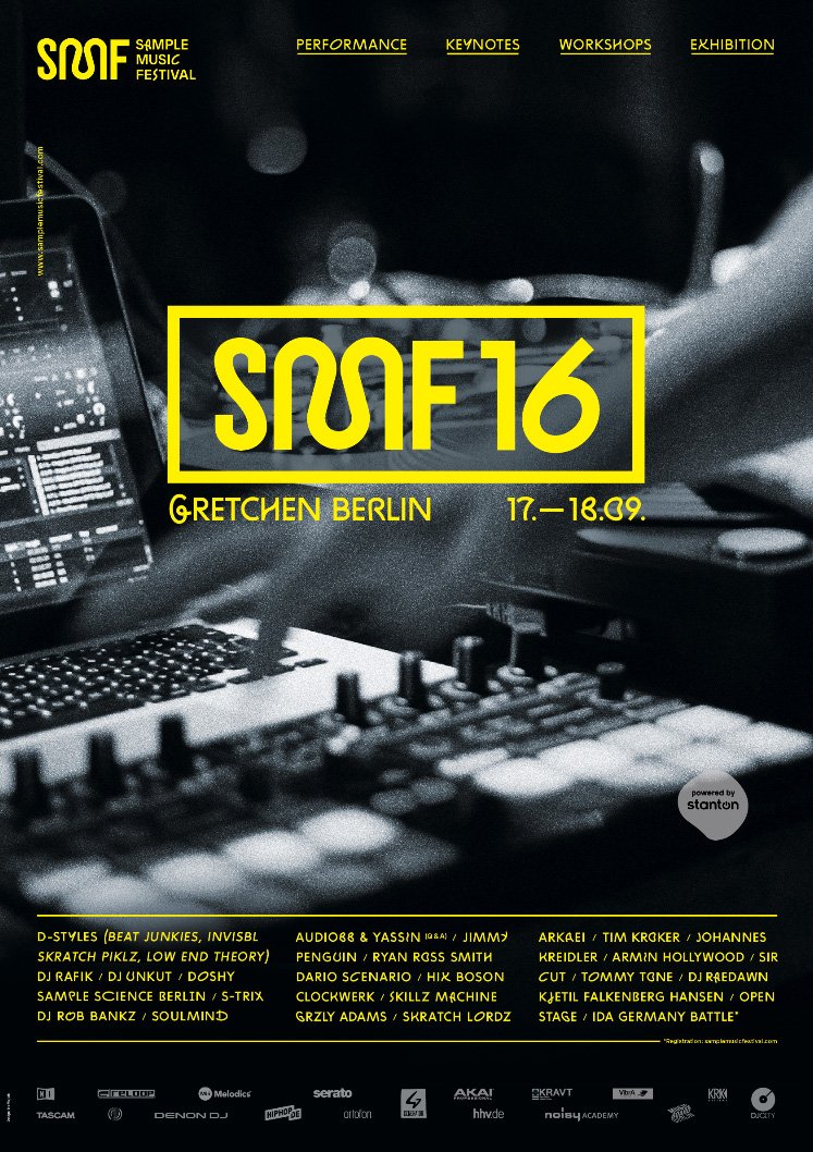 Das Sample Music Festival ist das erste Education Music Event speziell für Turntablism, Controllers und Music Production - ein Podium für Fachwissen und Diskussion, hochwertige Livedarbietungen und eine Messe bei der brandneues Equipment getestet werden kann. Durch Vorträge, Workshops und Performances einiger der führenden Sample Artists soll das Musizieren an diesen neuartigen Instrumenten stärker in den öffentlichen Fokus geraten. Als besonderes Highlight wird dieses Jahr die deutsche Turntablism Meisterschaft ausgetragen. Abgerundet wird dieses 3-tägige Spektakel durch eine fette Abendveranstaltung am Samstag sowie vieler kleinerer Jams im Outdoorbereich des GRETCHEN