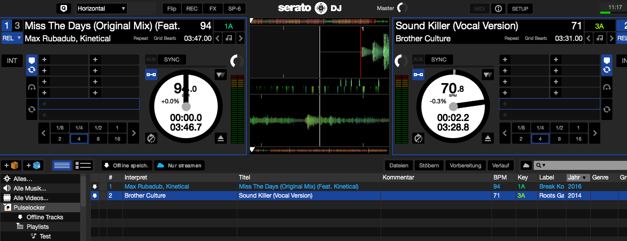 Ansonsten gibt es keine weitere Limitierung. Der PULSELOCKER-Account kann auf verschiedenen Rechnern genutzt werden, allerdings nicht gleichzeitig. Über die Suche in SERATO DJ läßt sich direkt auf den Bestand von PULSELOCKER zugreifen. Der feuchte Traum eines Musikwunscherfüllers. Die Suchergebnisse werden mit einem kleinen Logo gekennzeichnet. Ein gewählter Song wird ins Deck geladen und als Stream wiedergegeben. Dazu benötigt man natürlich eine Online-Verbindung. Ist diese nicht gegeben, muss man die Tracks vorab für eine Offline-Nutzung speichern. Loops, Cue-Punkte und ähnliche Performance-Funktionen stehen wie gewohnt zur Verfügung. Playlisten können nur direkt online (bei PULSELOCKER) angelegt werden, in SERATO DJ werden diese dann angezeigt. Alternativ müsste man zur Ablage einer Titelauswahl in der Software die Crates verwenden.