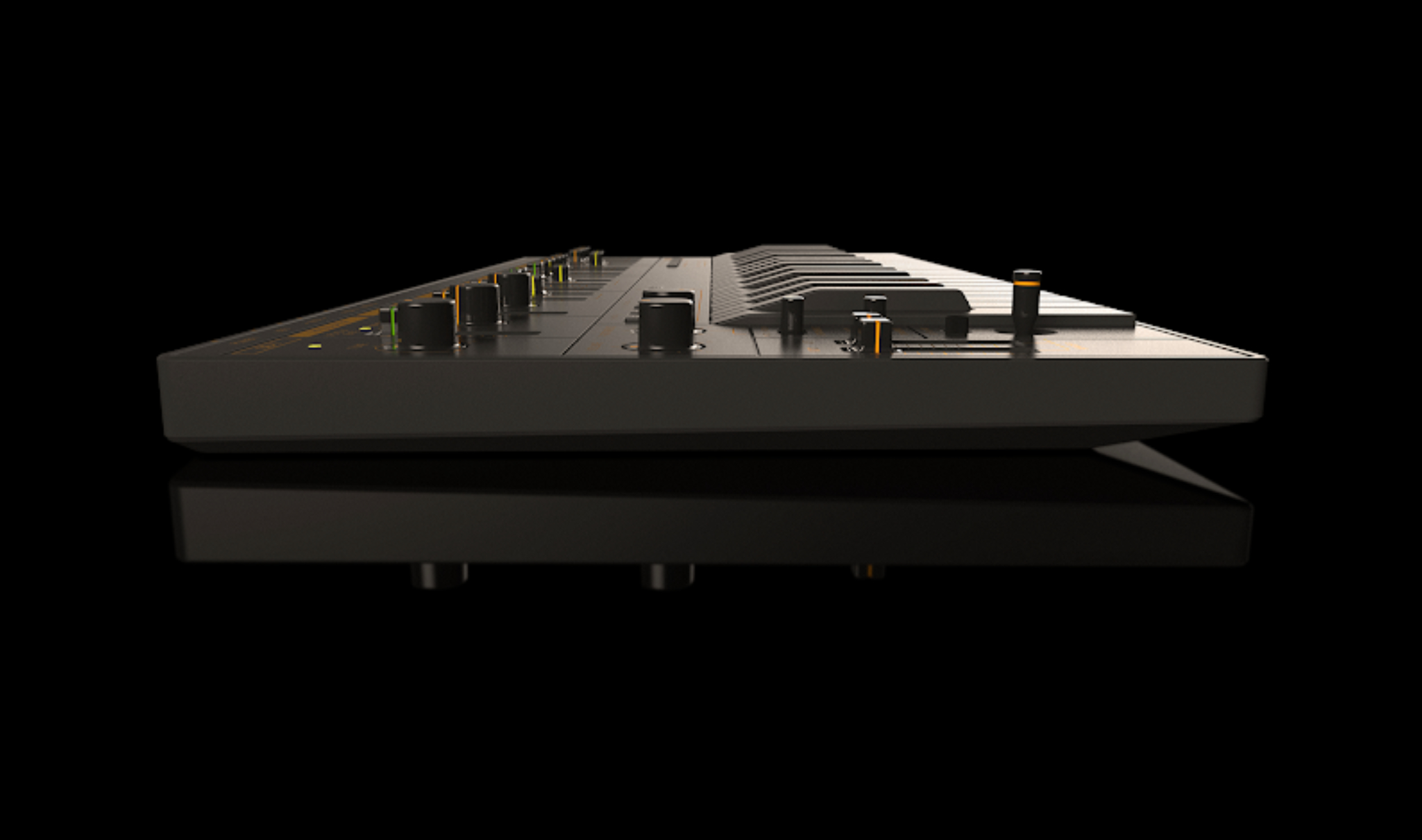 Direkt ins Auge fällt das markante Design: Ungleich dem in den Farben Anthrazit, Rot und Blau erhältlich gewesenen Original, setzt der SB-1 auf ein zeitgemäßes, von orangener Beschriftung durchzogenes Schwarz. Auch die Klaviatur, die abweichend vom SH-101 auf einem neu entwickelten Konzept mit Gummi-Dome-Schaltern basiert, kommt in diesen Farbtönen, insgesamt ergibt sich dadurch ein wirklich ästhetisches Äußeres. Das Gehäuse des Mono-Synths ist dabei sehr dünn und trotzdem stabil.